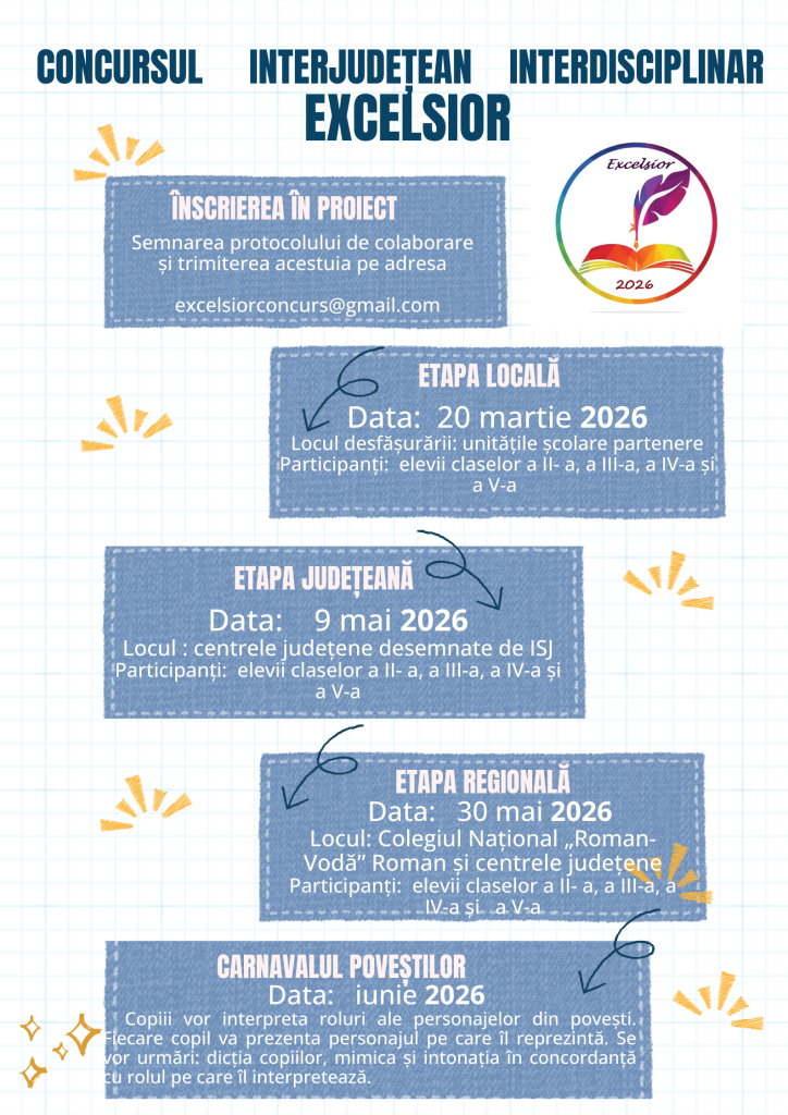 Concursul Regional Excelsior este inițiat de Inspectoratul Școlar Județean Neamț și de Colegiul Național „Roman-Vodă.